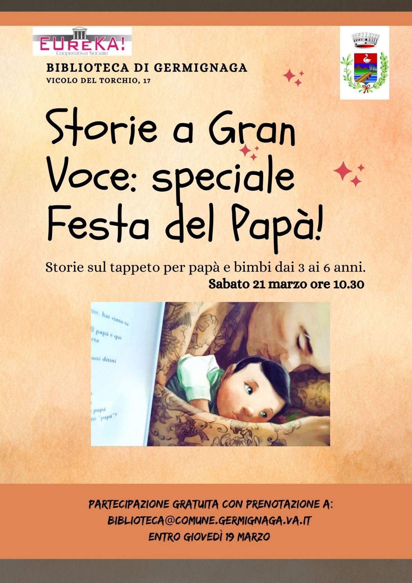 Descrizione Storie a gran voce: storie sul tappeto per papà e bimbi dai 3 ai 6 anni. A cura di Servizi sociali Ultimo aggiornamento pagina: 12/03/2026 13:01:59